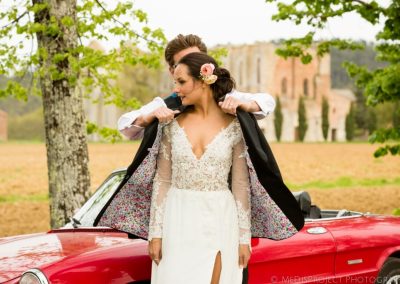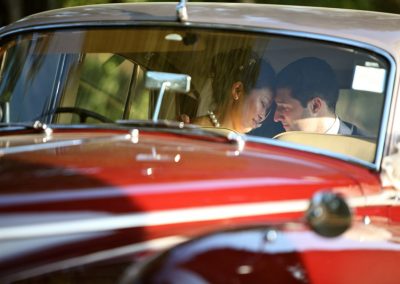Many couples choose classic white for the wedding day but when it comes to convertible two seater sports cars a red car is undoubtedly a love at first sight.
