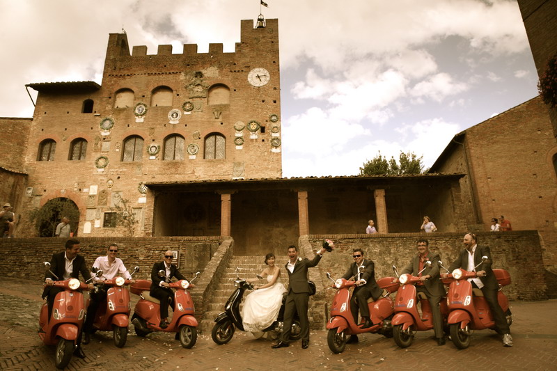 But the treat is not only for the Bride and Groom… The wedding party can also have their share of fun hiring vespas for the wedding day. Your Italian wedding will be really more like out of a movie!