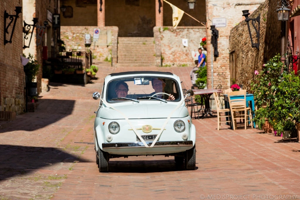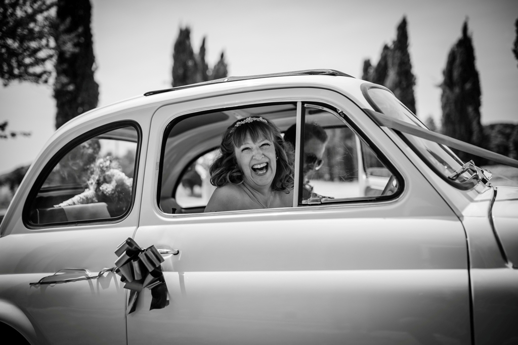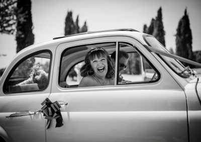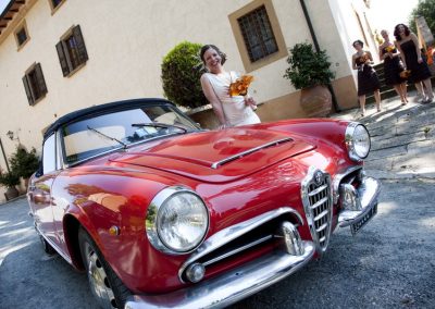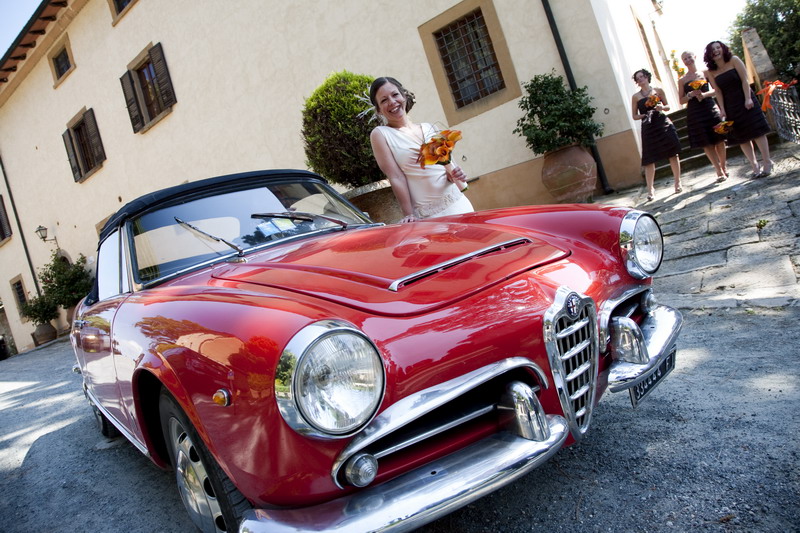 The choice of cars is wide and usually reflects the style of the wedding. You name it: from Alfa Romeo Spiders and Giulietta to all models of Fiats from the sports cars to the classic Cinquecento. And of course for the grooms seriously passionate about Ferraris you cannot miss out on a ’80s flaming Ferrari.