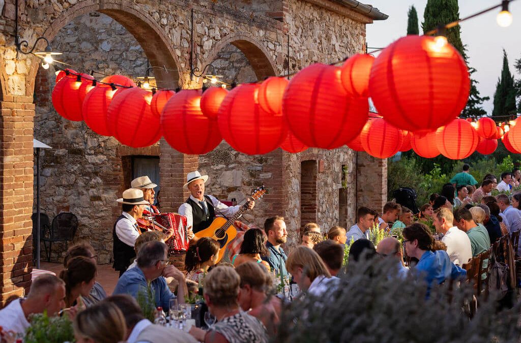 When you think of a destination wedding in Tuscany, it’s easy to picture golden sunsets, rolling vineyards, and candlelit dinners under the stars – but the celebration starts long before the wedding day itself. This pre-wedding pizza party brought together over 100 guests for an unforgettable welcome night filled with warmth, music, and the unmistakable flavour of Italy.